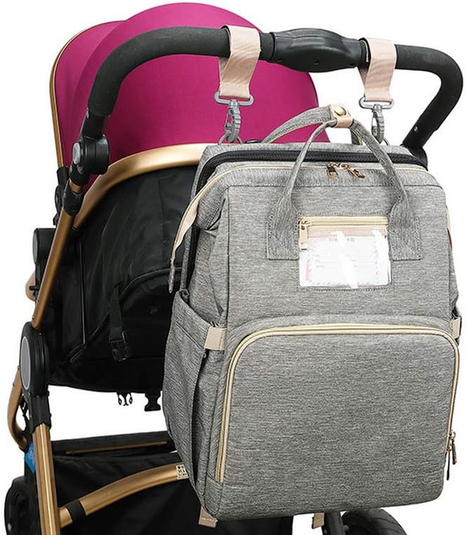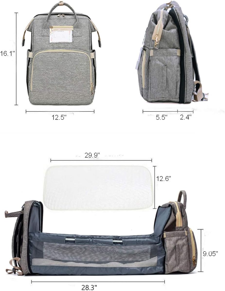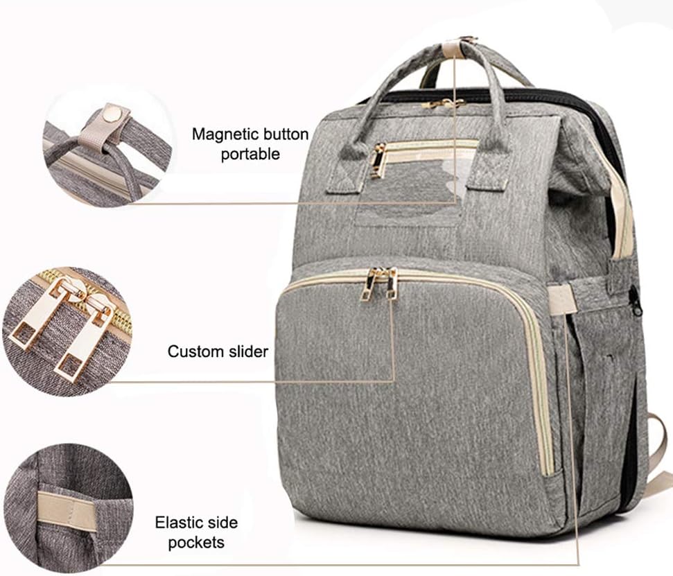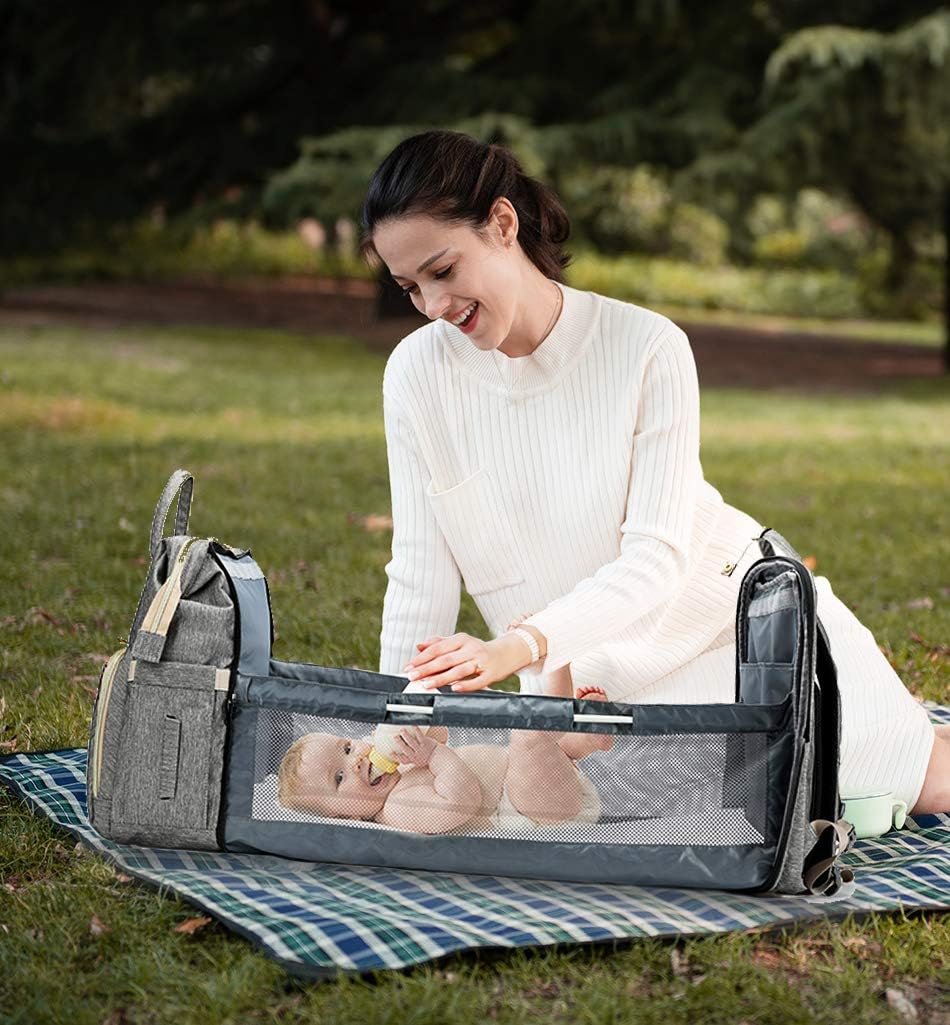 تصميم متعدد الوظائف : يتحول على الفور من حقيبة حفاضات أنيقة إلى سرير ناعم وآمن أو محطة تغيير حفاضات مريحة.