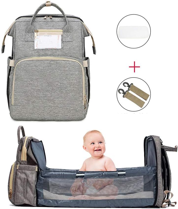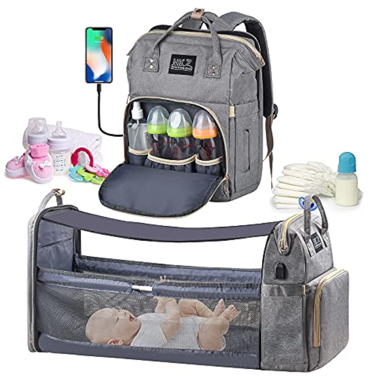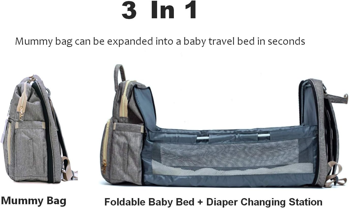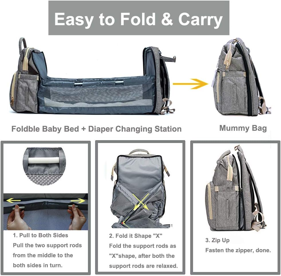 تصميم متعدد الوظائف : يتحول على الفور من حقيبة حفاضات أنيقة إلى سرير ناعم وآمن أو محطة تغيير حفاضات مريحة.